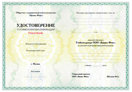 удостоверение о повышении квалификации или диплом о профессиональной переподготовке или сертификат, оригинал которого будет направлен вам почтой России после окончания обучения